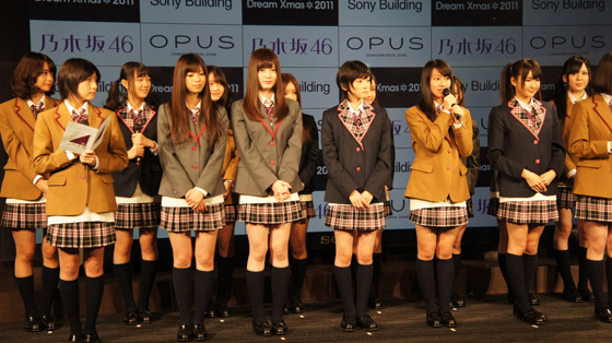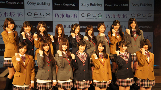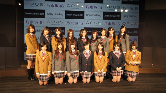 アイドルグループAKB48の“公式ライバル”として今年8月に結成された乃木坂46の選抜メンバー16人が21日、東京・銀座ソニービルで「乃木坂46 クリスマス・スペシャルウイーク@OPUS」の記者発表に出席した。25日まで同ビル8階のコミュニティゾーンでメンバーが日替わりで登場し、連日握手会を行うほか、メンバーのスペシャル映像を200インチの大画面で上映するなど、期間中は乃木坂46一色に。また1階のエントランスホールに5台設置されているウォークマンでメンバーからのクリスマスメッセージが視聴できるほか、抽選でメンバーのオリジナルサイン色紙をプレゼントする企画もある。また、2012年2月22日にCDデビューすることもこの日発表された。